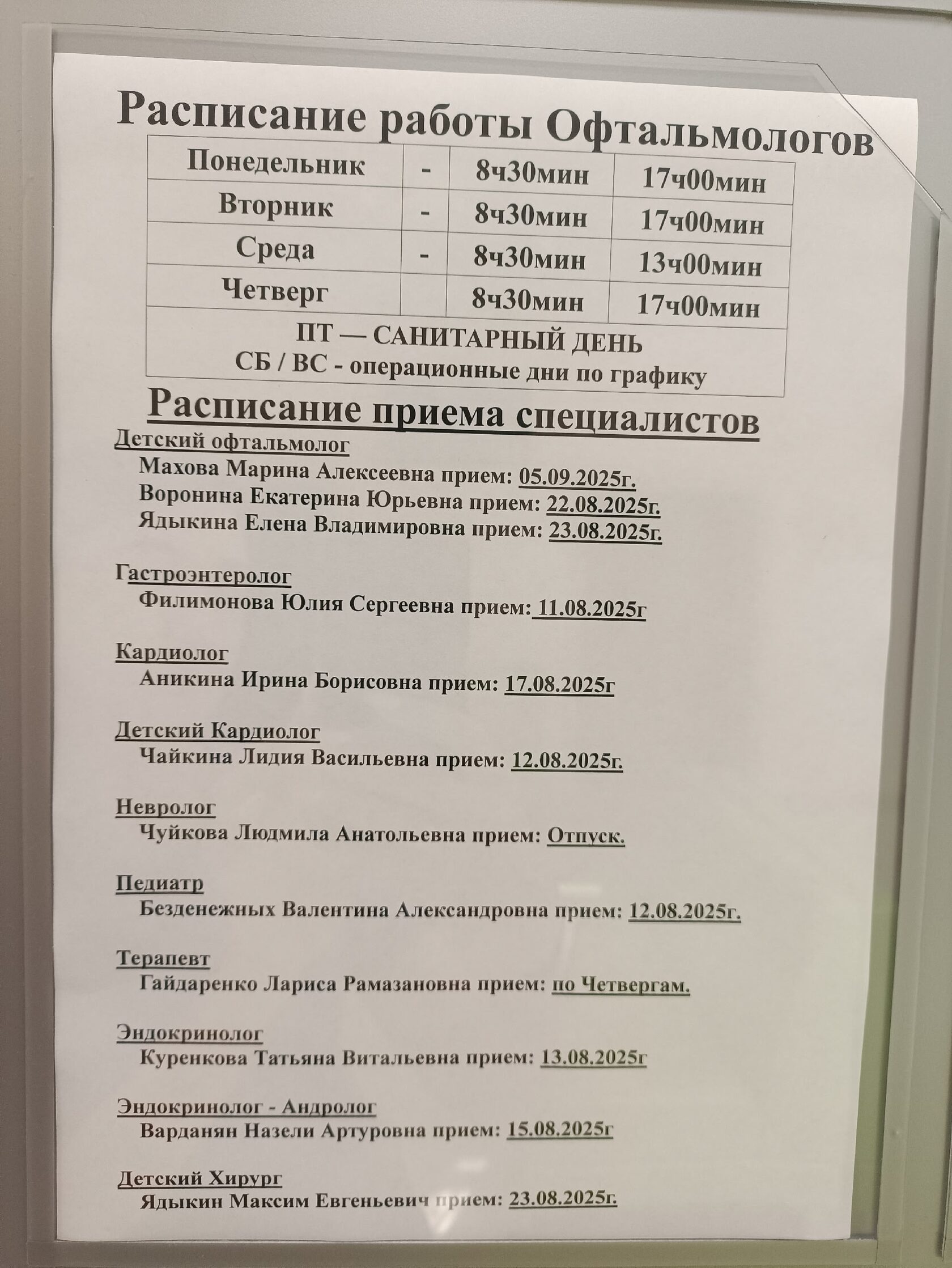 График работы Глазного Центра с 11.08 по 14.08